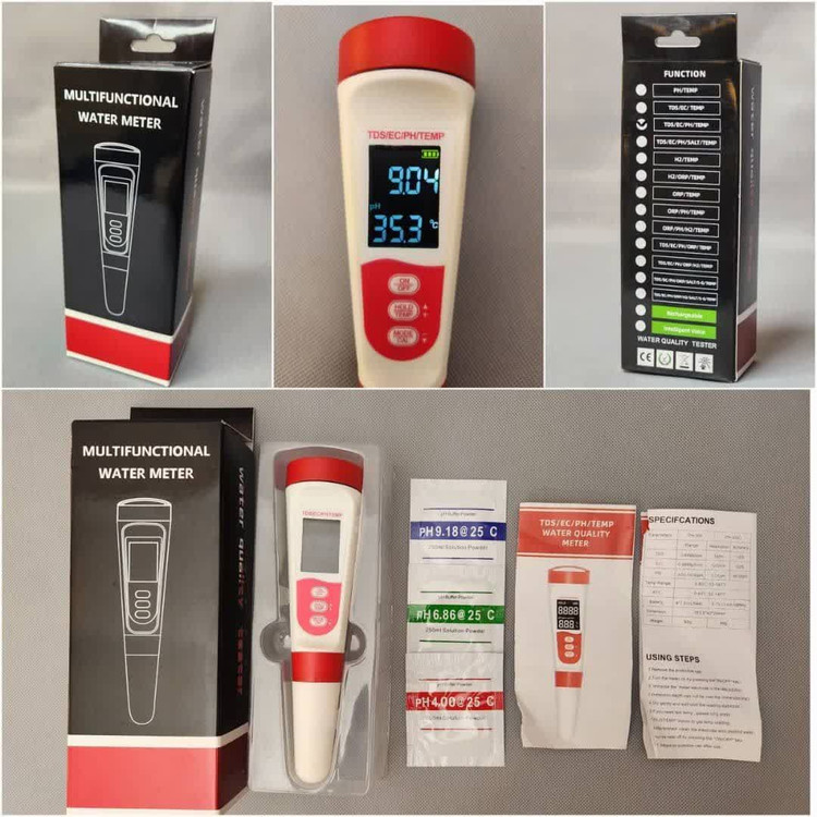 اندازه گیری: PH آب (۰تا۱۴) / دمای آب (۰ تا ۶۰) / سختی آب ( ۰ تا ۹۹۹۹) / EC آب (۰تا۹۹۹۹)
