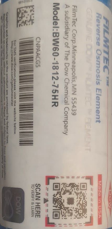فیلتر ممبران ۷۵ گالن فیلمتک اصل FILMTEC مدل BW60-1812-75HR