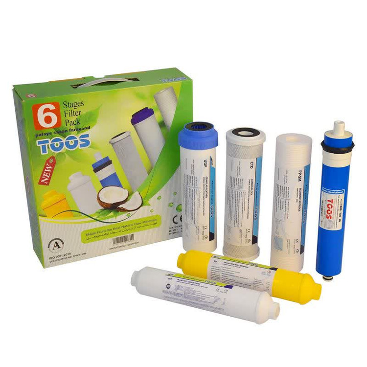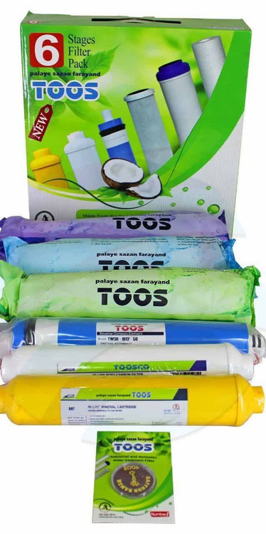 محتویات جعبه: ۶ فیلتر:فیلترهای پیش تصفیه+ ممبران+ پست کربن+ فیلتر مینرال+ هدیه زعفران